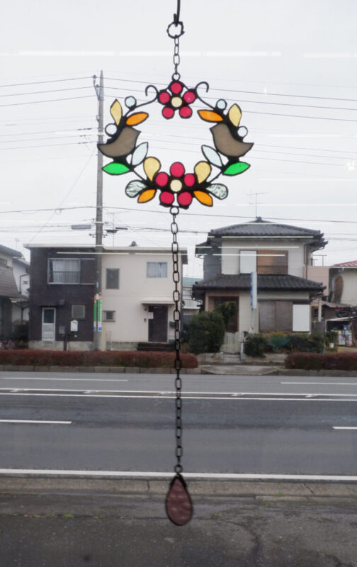 生徒さんの作品。ステンドグラスのバラの小物入れ2