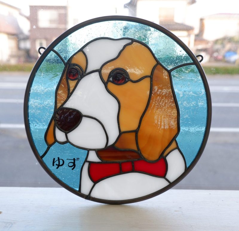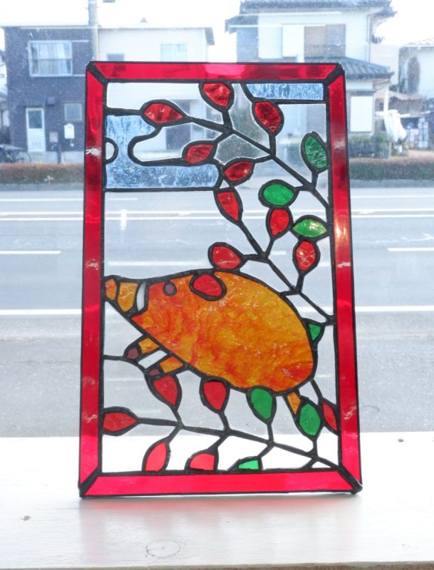 生徒さんの作品。ステンドグラスの花札、イノシシ