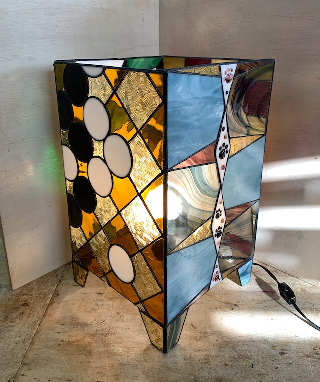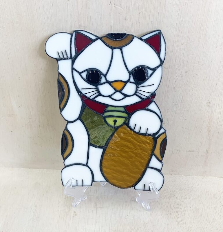 生徒さんの作品。ステンドグラスの招き猫