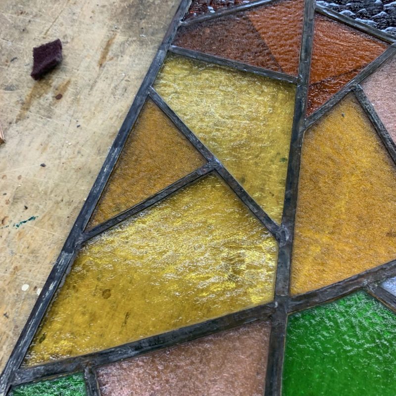 ステンドグラスランプの修理(スパイダーの取替と補強)