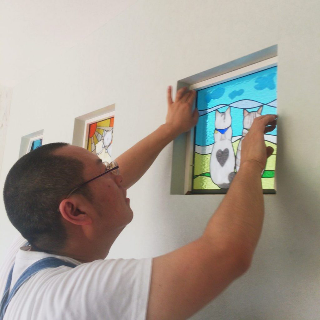 鎌倉のお客様のところに猫のステンドグラスを施工しにお伺いさせていただきました。