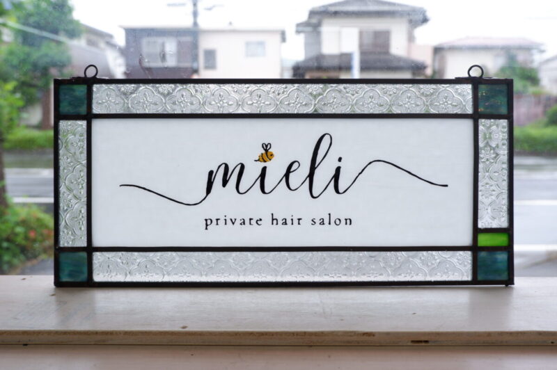 生徒さんの作品。ステンドグラスの美容室の看板New!!