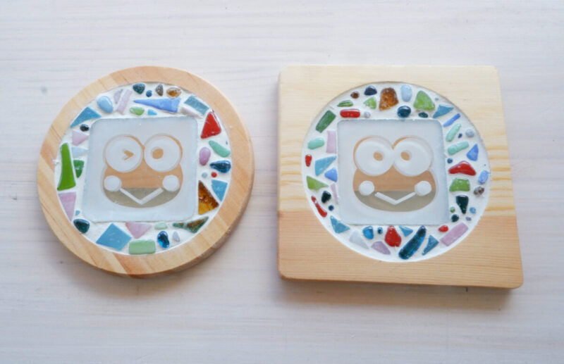 生徒さんの作品。けろっぴのコースター(モザイク)