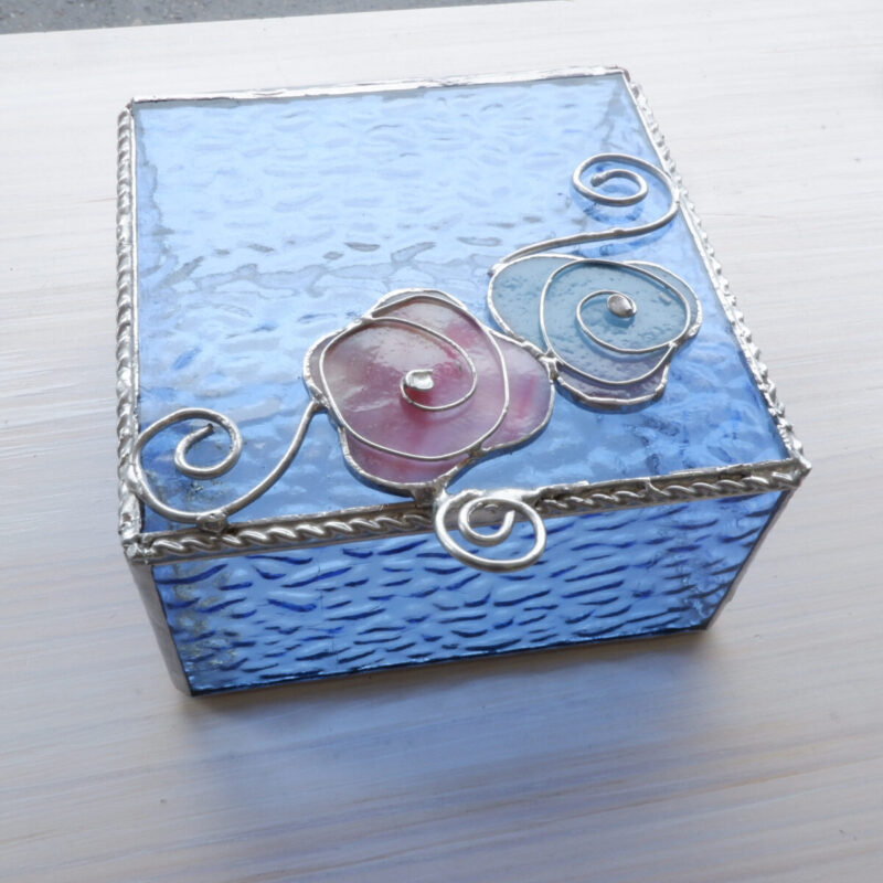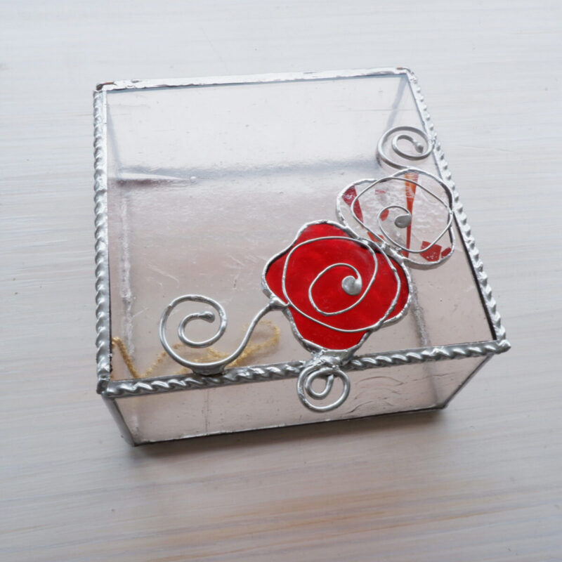 生徒さんの作品。ステンドグラスのバラの小物入れ2