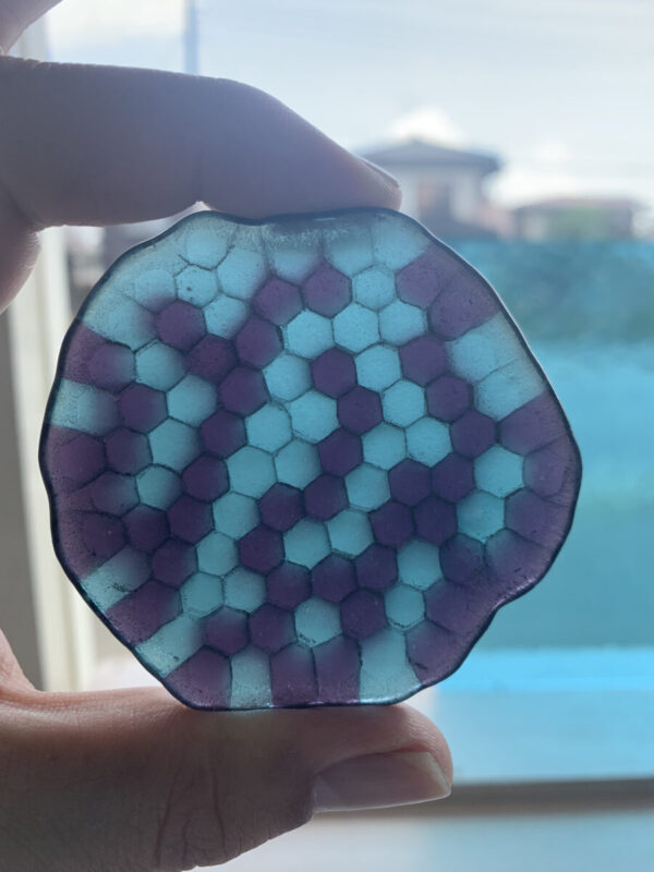 生徒さんの作品。六角形を敷き詰めた模様のテストピース