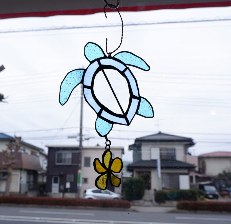 生徒さんの作品。ステンドグラスのホヌのオーナメント