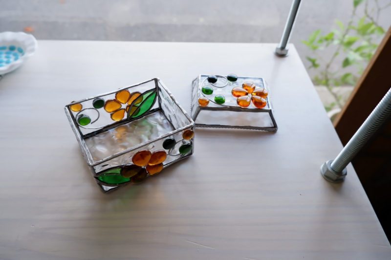 生徒さんの作品。蓮のステンドグラスの写真立て