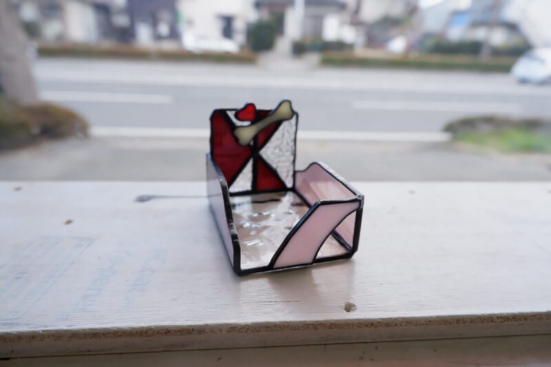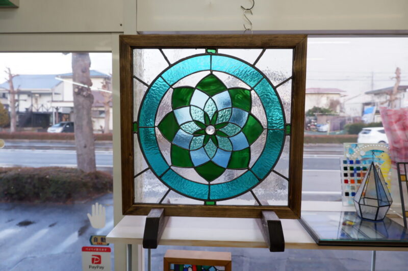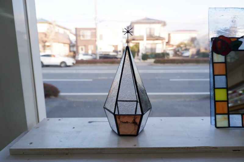 生徒さんの作品。ステンドグラスの十字架のテラリウム