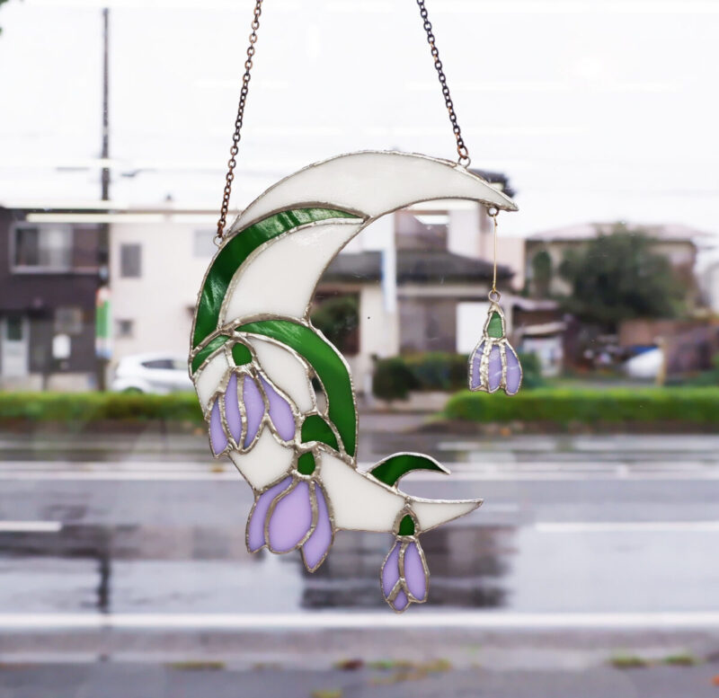 生徒さんの作品。ステンドグラスの花のランプ