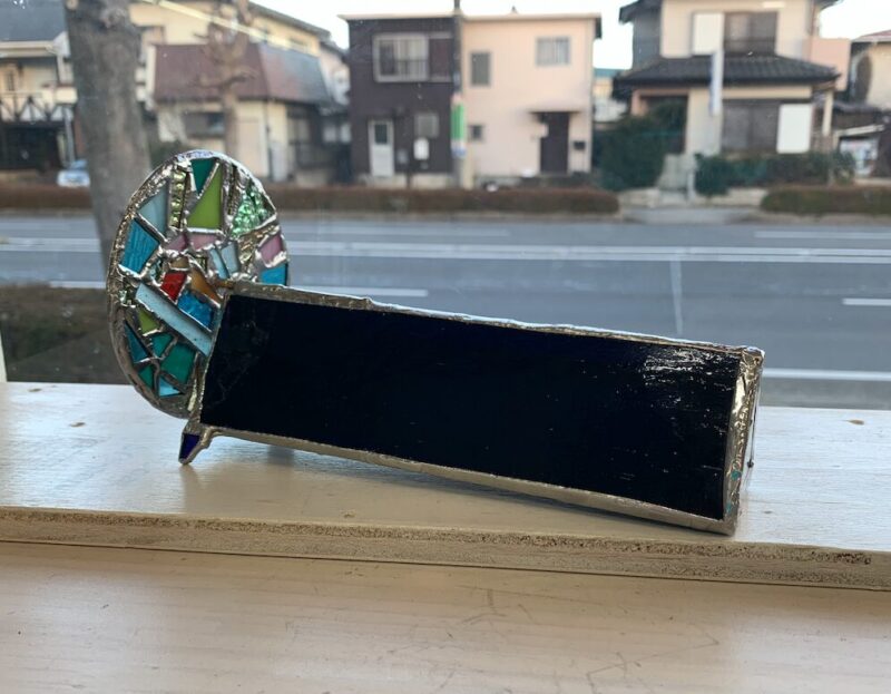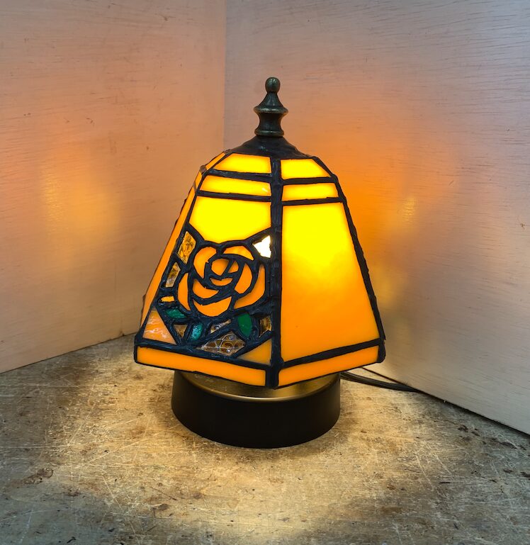 生徒さんの作品。ステンドグラスの薔薇のランプ