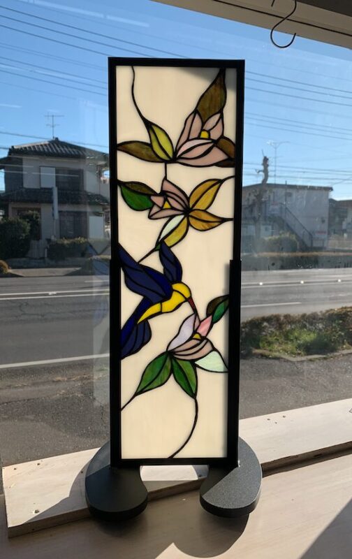 生徒さんの作品。ステンドグラスの薔薇のランプ