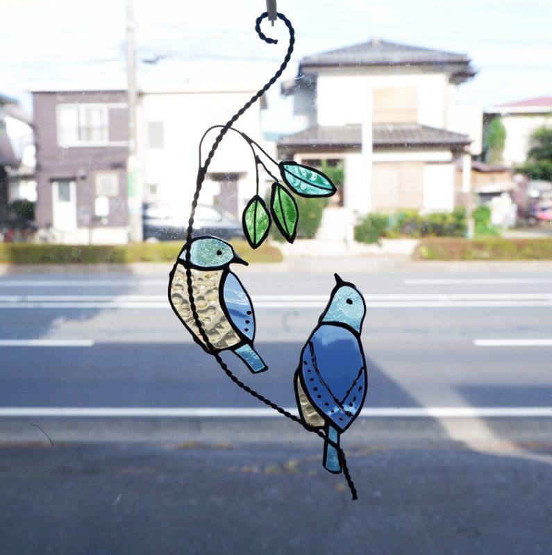 生徒さんの作品。ステンドグラスの鳥のオーナメント