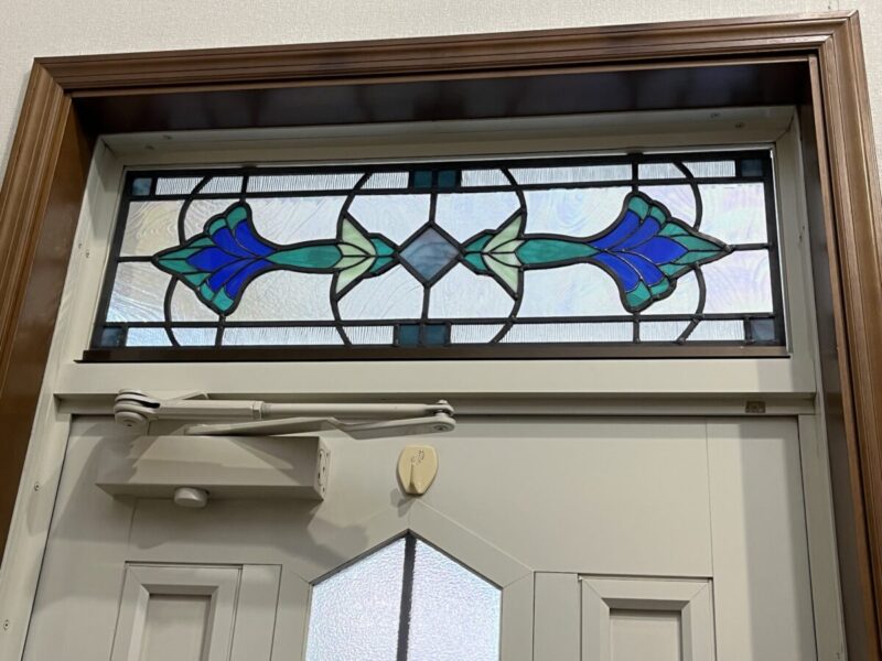 生徒さんの作品。ステンドグラスの向日葵のランプ