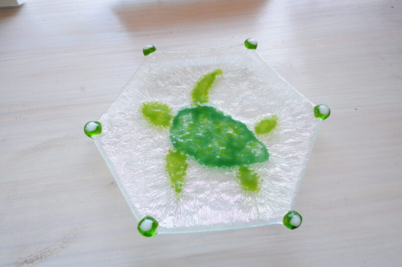 生徒さんの作品。フュージングのホヌのお皿