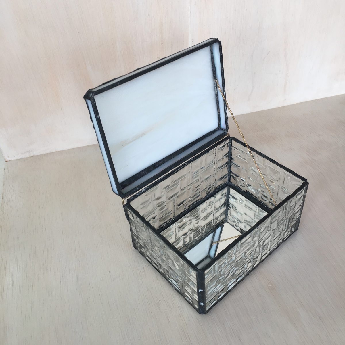 2018年9月18日 / 最終更新日時 : 2018年9月18日 okno その他 生徒さんの作品。ボックス 側面に使われているアブストラクトのガラスと底が鏡になっていて素敵です! 落ち着いた色使いでいい感じです。