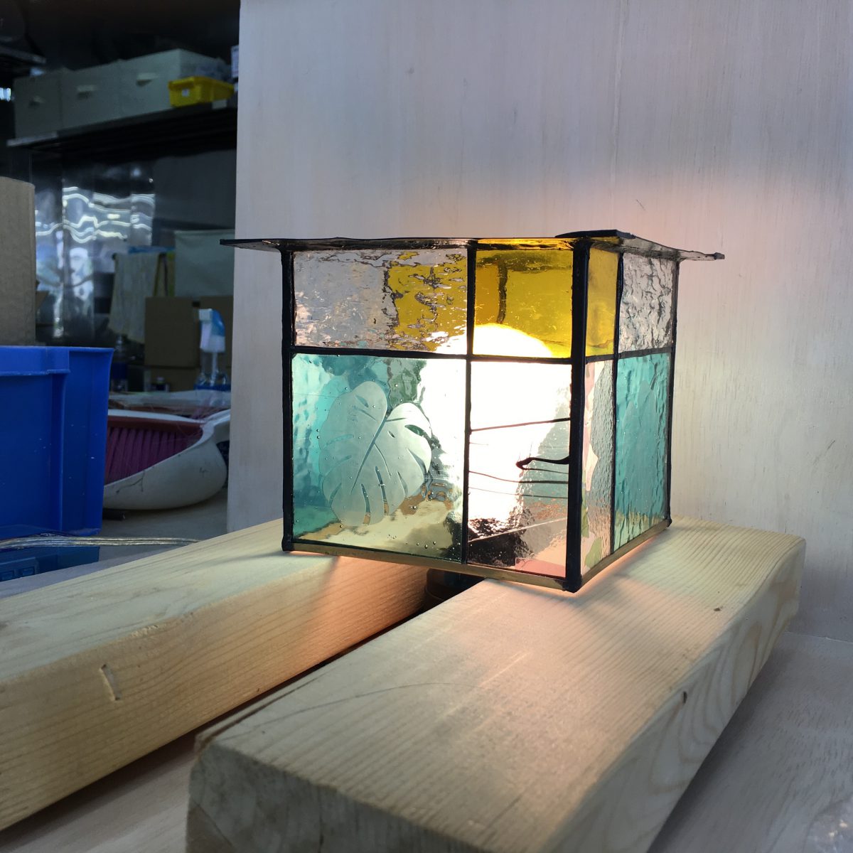 2018年7月18日 / 最終更新日時 : 2018年7月18日 okno ランプ 生徒さんの作品。モンステラのランプ モンステラをサンドブラストで彫り込んだ玄関脇のランプです。 涼し気な色合いで素敵です!