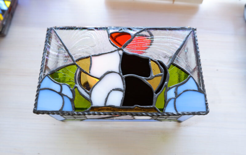 生徒さんの作品。丸い風景のステンドグラスパネル