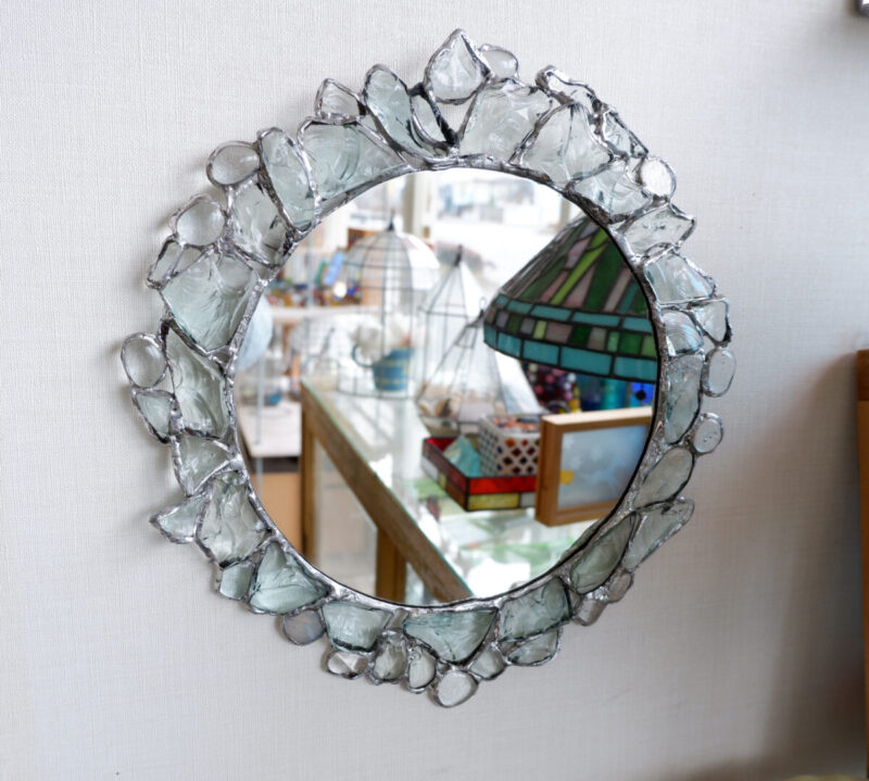生徒さんの作品。ダル・ド・ヴェールのカケラで作った鏡