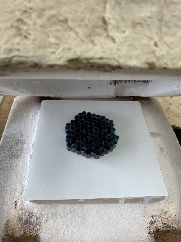 生徒さんの作品。六角形を敷き詰めた模様のテストピース