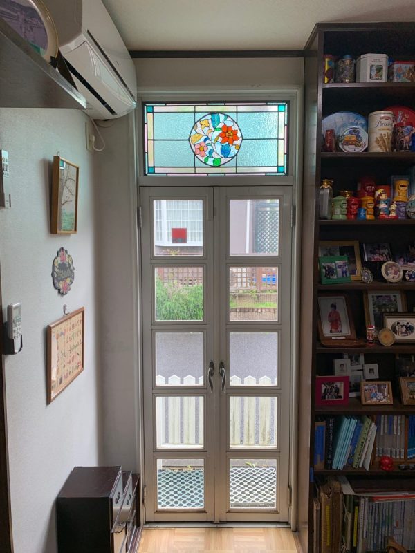 生徒さんの作品。旧鳩山邸のステンドグラスデザインのパネル