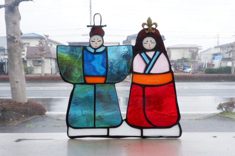 生徒さんの作品。ステンドグラスの鳥の飾り物