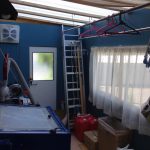 小屋の壁はサックスブルーとかいう色で塗ったらいい感じでした。 サンドブラストと木工がかなりやりやすくなりました。