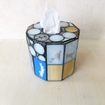 2019年7月6日 / 最終更新日時 : 2019年7月6日 okno その他 生徒さんの作品。ステンドグラスのロールペーパーケース 生徒さんの作品のロールペーパーのケースです。 サンドブラストで猫が彫り込まれていて素敵です! 丸い模様と底の文字もいい感じです!