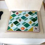 2019年7月13日 / 最終更新日時 : 2019年7月13日 okno その他 生徒さんの作品。絵付けモザイクタイル 生徒さんの作品でステンドグラスのガラスを使ったモザイクタイルです。 ワゴンの天板になります。 絵付けをして焼付てあります。 フルーツが可愛く色合いも素敵です!