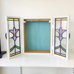 2018年10月27日 / 最終更新日時 : 2018年10月27日 okno パネル 生徒さんの作品。ステンドグラスの扉 鉛ケイム組技法のステンドグラスの扉の棚です。 細かい柄のため結構苦労されていました。 色合いも綺麗で素敵です!
