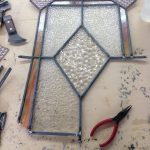 2019年7月6日 / 最終更新日時 : 2019年7月6日 okno 修理 鉛ケイム組のステンドグラスの分解修理 ケイムを彫刻刀で切断して、割れた箇所に到達するまで分解し新しいガラスに嵌め直して交換しています。