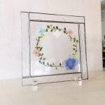 2019年2月27日 / 最終更新日時 : 2020年3月22日 okno その他 生徒さんの作品。ステンドグラスの押し花のプレート 生徒さんの作品。押し花を使ったプレートです。 押し花を2枚のガラスで挟んでいます。 真ん中にサンドブラストで文字が彫り込まれています。 スッキリしたデザインで花が浮き立っていて素敵です!