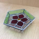 2017年8月29日 / 最終更新日時 : 2018年5月12日 okno その他 生徒さんの作品。(花のトレー) 花のデザインのステンドグラストレー 足にガラス玉を接着しています。 花芯のナギットもいい感じです!