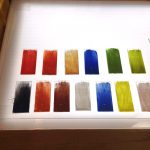 2014年3月29日 / 最終更新日時 : 2018年4月28日 okno その他 ステンドグラスの絵付けのカラーテスト 絵付けで使うロイシェというメーカーの顔料。 グリザイユ653℃ エマイユ568℃ で焼付けしてテストピース作成中