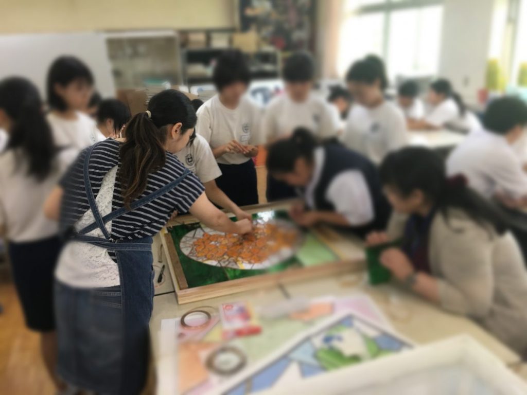 2019年8月20日 / 最終更新日時 : 2019年8月20日 okno パネル 牛久市下根中学校美術部と一緒にステンドグラスの製作 今年度に新設される”ひたち野うしく中学校”に取り付けられるステンドグラスを 牛久市の下根中学校美術部の皆さんと製作しています!
