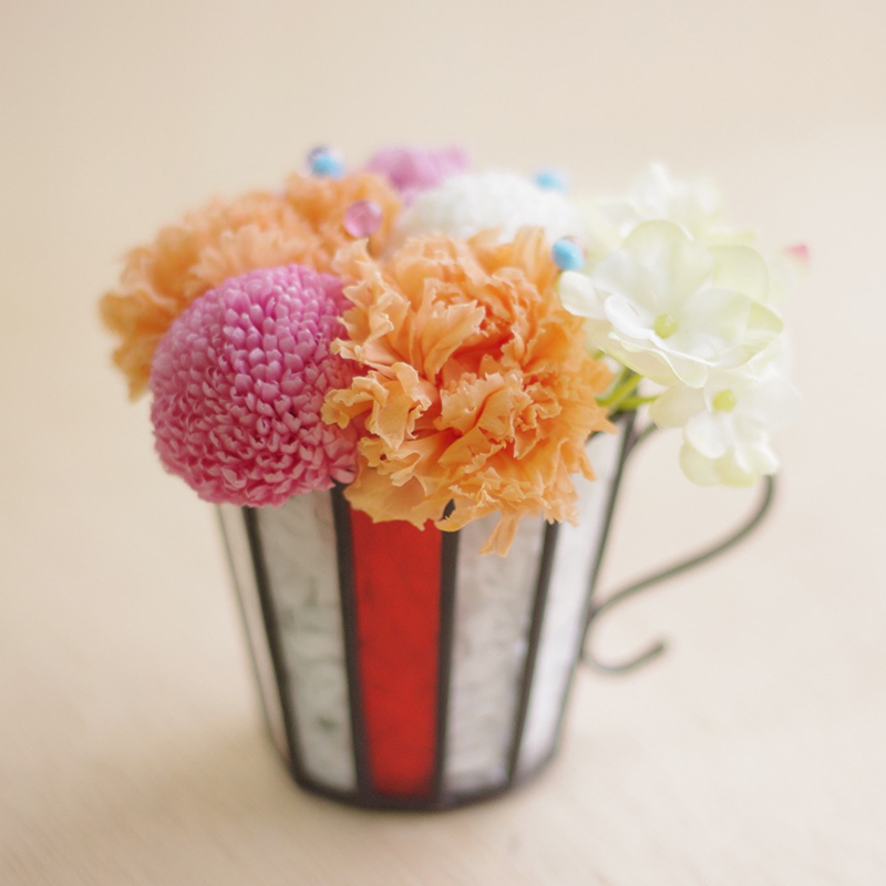 minneからステンドグラスのキャンドルホルダーと”アーティフィシャルフラワー・プリザーブドフラワー”をアレンジメントして母の日ギフトを作って欲しいというリクエストがあったので製作させていただきました。
